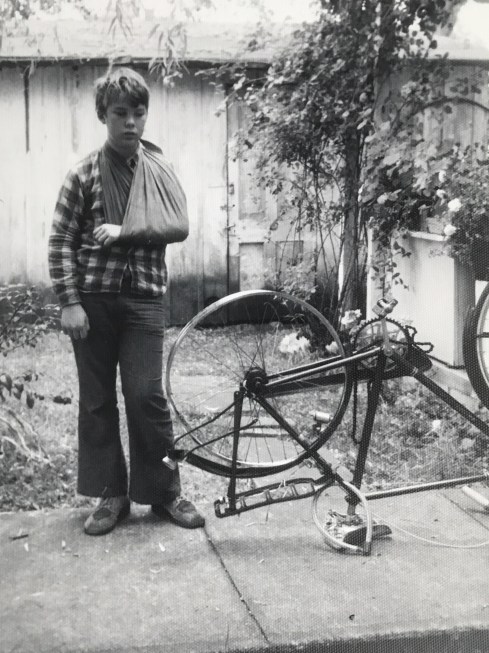 The bike and me – after I got home from the hospital, and the bike came back from the police station