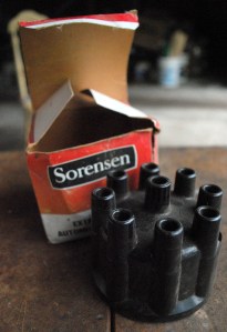 So I yanked all the plugs out – sure enough, three were pretty bad, and gapped the 8 new ones so they were set right, then popped them in, put new points in, gapped them, replaced the cap and rotor, making sure that all 8 plug wires were connected in the right order, then replaced the condenser and then, finally, got my timing light out and made sure all the plugs were firing when they were supposed to. It wasn’t hard, but it did take just a touch more than the hour I’d budgeted for it, and I was getting worried that I might not make it in time to pick her up from tennis practice like I’d promised.